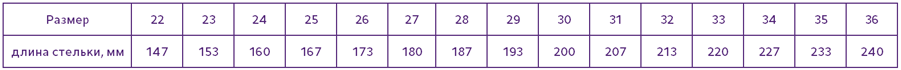Таблица размеров